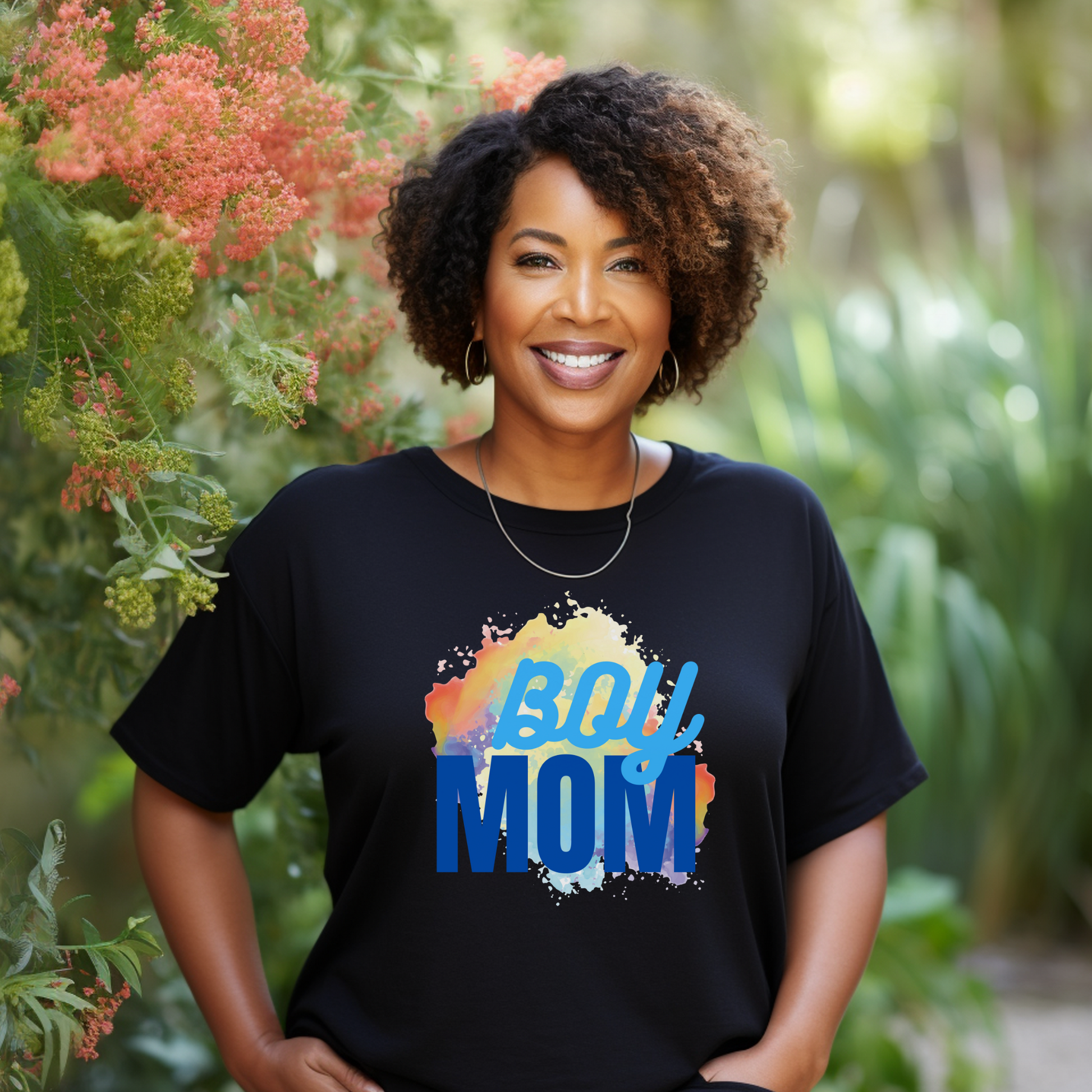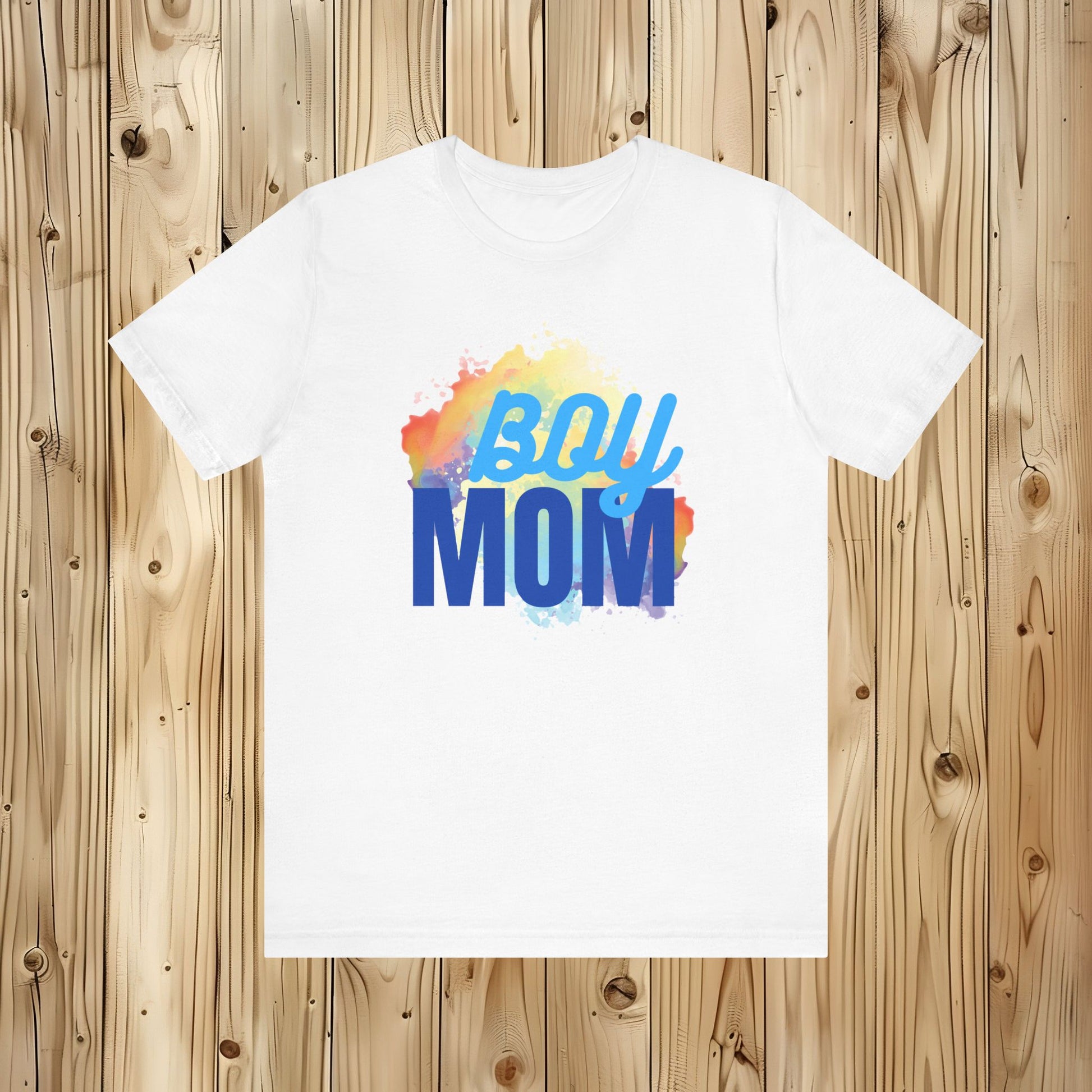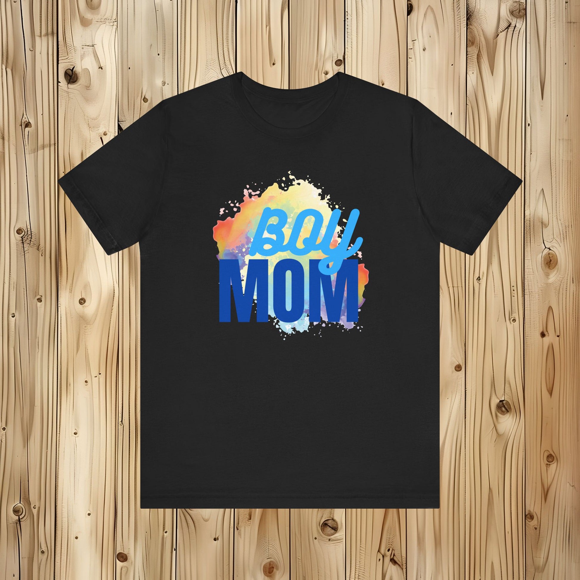 Color burst t-shirt designed for boy moms, perfect for celebrating Mother's Day. This unisex jersey short sleeve tee offers a comfortable fit and a vibrant design that exudes joy and positivity. Ideal for moms who want to showcase their love for their sons in a stylish and fun way, relevant for Mother's Day and everyday wear.