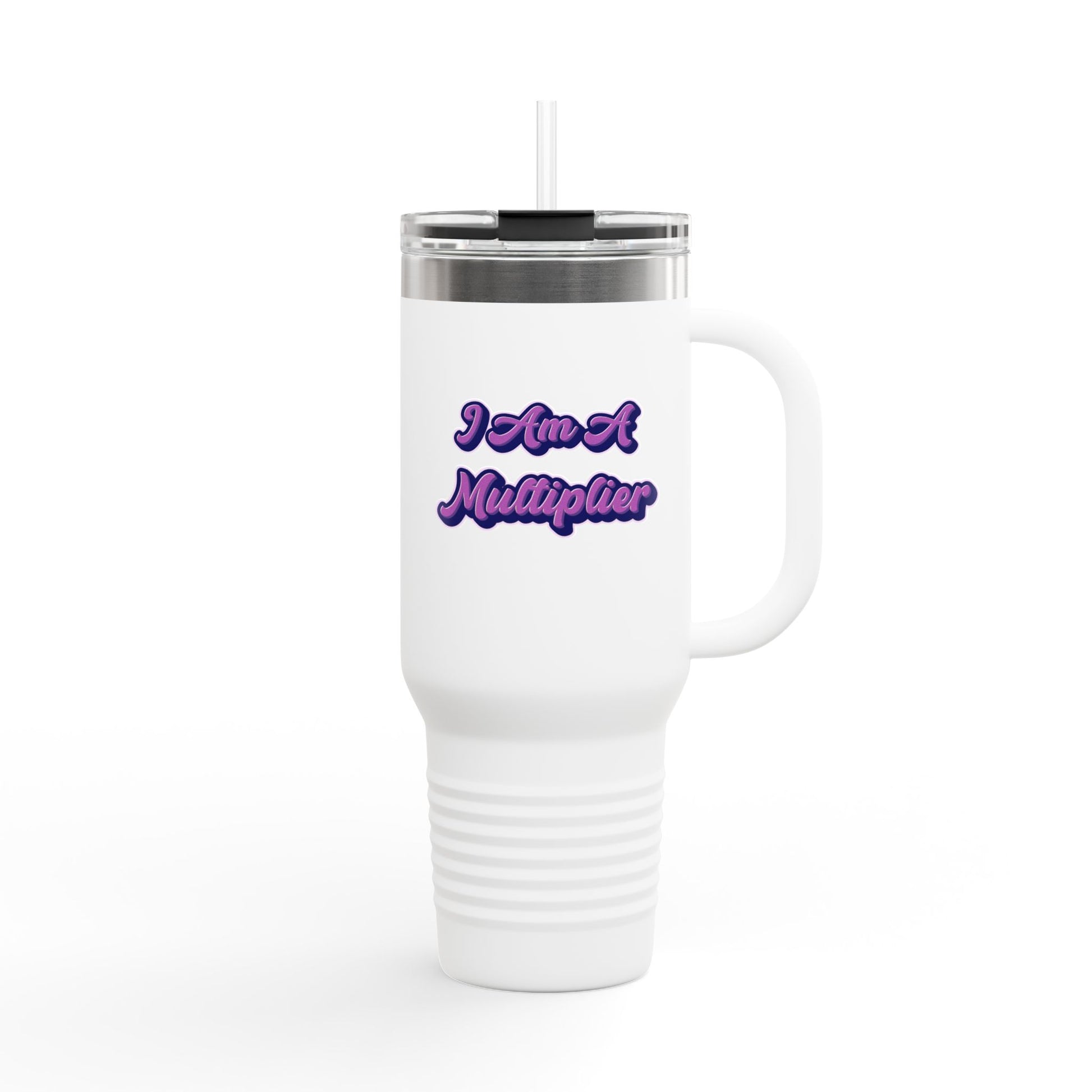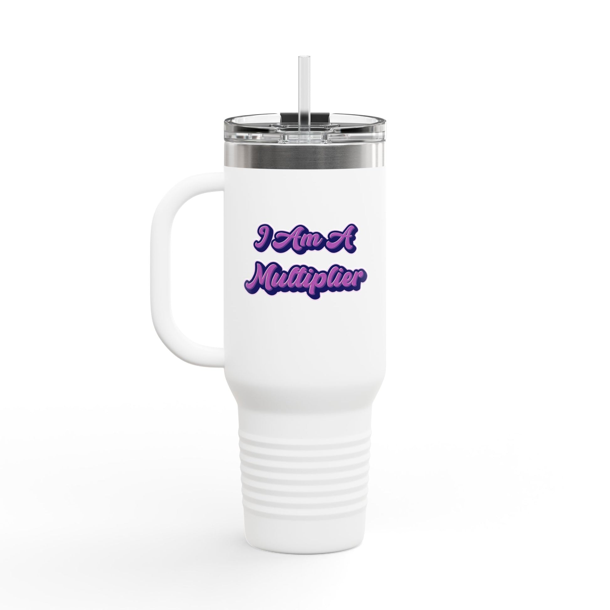 Stay hydrated on the go with our I Am A Multiplier 40 oz tumbler. Made from durable stainless steel, this double-wall insulated mug keeps your drinks hot or cold for hours. The large 40oz capacity is perfect for long trips and outdoor activities. The convenient handle and leak-proof lid make it easy to carry without any spills. Ideal for those who are always on the move, this tumbler is perfect for everyday use, road trips, hiking, or camping.