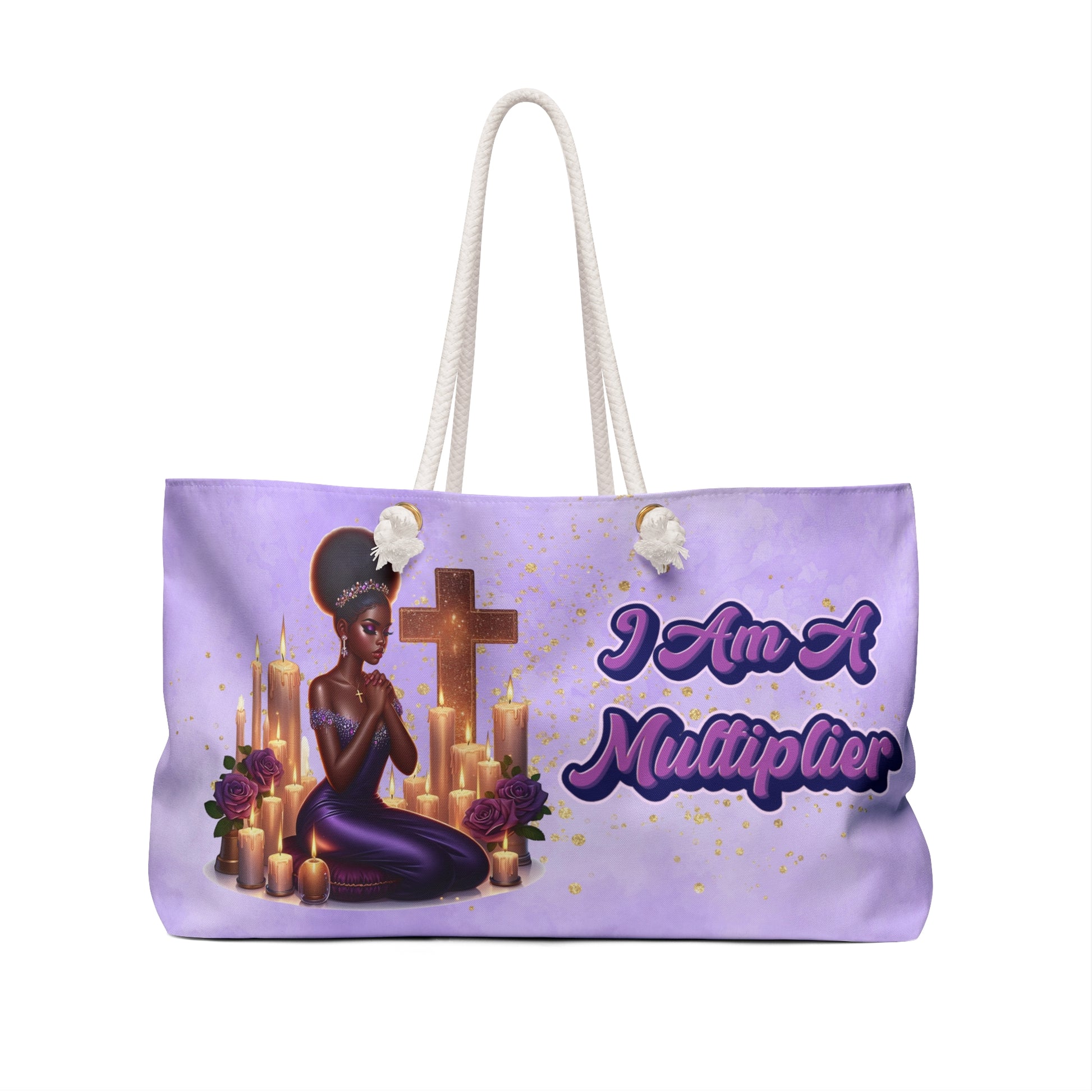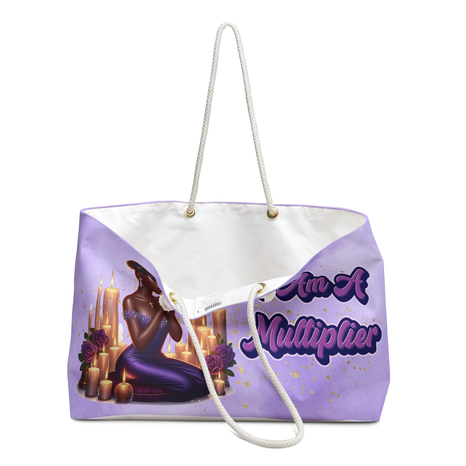 Spiritual Weekender Bag, I Am A Multiplier Tote, Travel Bag, Yoga Tote, Inspirational Gift, Empowerment Bag