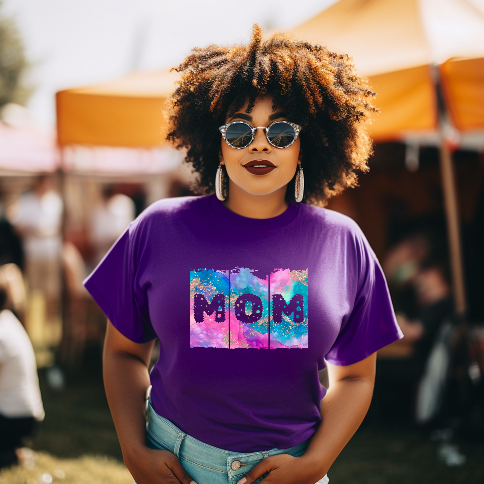 A vibrant T-shirt with tropical colors and a brush stroke design, perfect for moms looking for a fun and stylish addition to their wardrobe. This unisex jersey short sleeve tee is made with 100% Airlume combed and ring-spun cotton, making it lightweight and breathable for active or leisure wear. The retail fit is versatile for casual and semi-formal settings, and the tear-away label minimizes skin irritations. Ideal for holidays, vacations, and everyday wear.